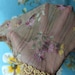 This is SOFT! In lovely peach floral -adorned lace, trimmed in elegant gold Venise lace, this long, rounded rectangular chapel veil may also be used as a shawl, scarf, or wrap before or after Mass. It measures about 56 x 20 inches . Includes free sewn in clip, and mesh drawstring veil bag.